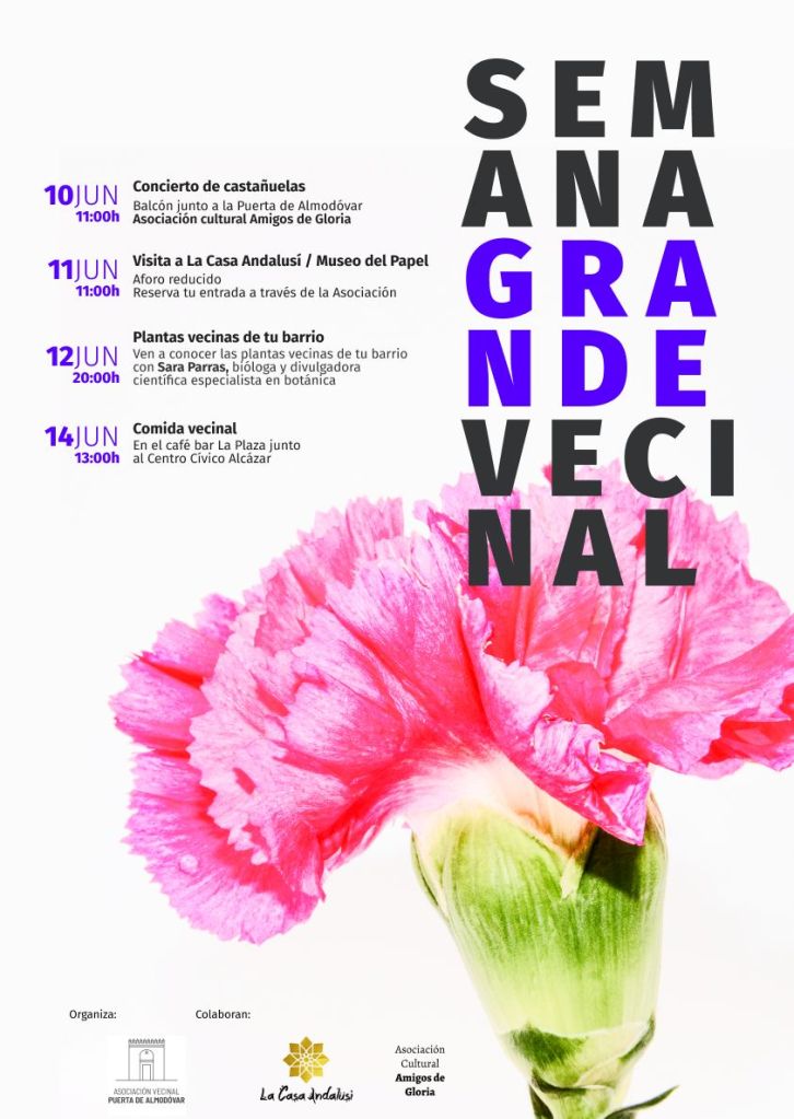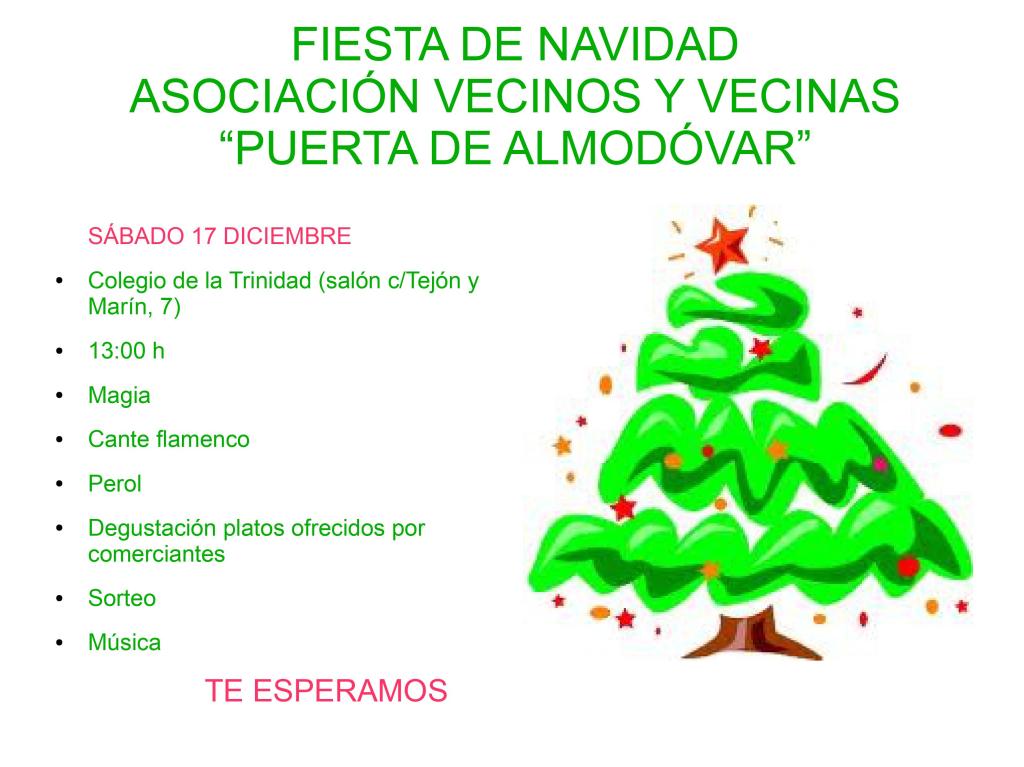 Fiestas Vecinales Inicio |Quiénes somos |Otras Miradas VIII ediciónEdiciones anteriores| Actividades Concursos de DominóConcurso de IG| Participación ciudadana Consejo Distrito Centro| Encuentros Fiestas VecinalesHomenajes| Contacto Estatutos 2025 Concierto de castañuelas Visita a la Casa Andalusí/ Museo del papel Paseo para conocer las plantas del barrio Comida vecinal 2019 Convivencia Vecinal en torno a productos típicos navideños. 2018 2017 2016 2015 2014 2010